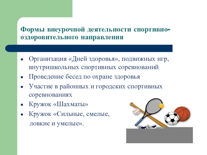 Слайд 6Формы внеурочной деятельности спортивно-оздоровительного направления