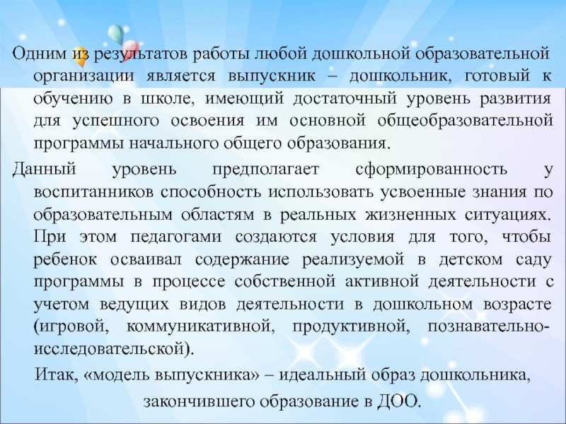 Итак, «модель выпускника» – идеальный образ дошкольника,