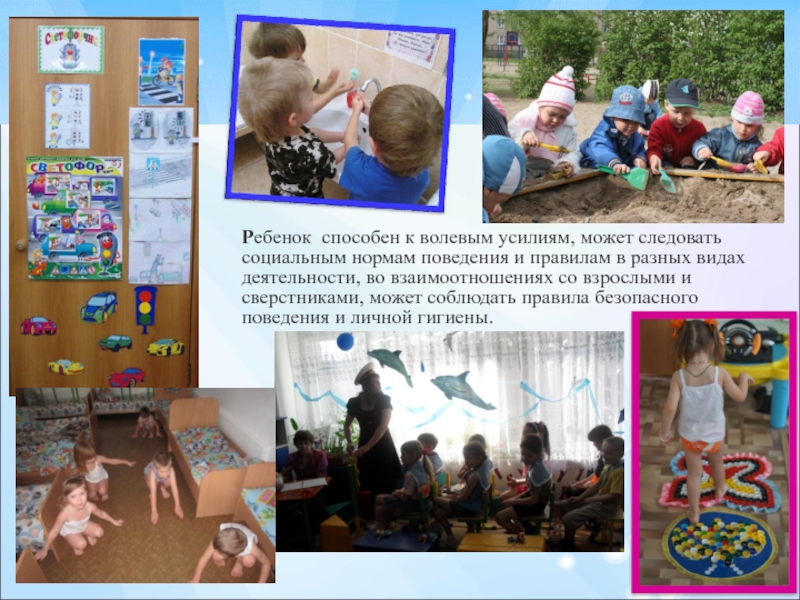 Слайд 9Ребенок способен к волевым усилиям, может следовать социальным нормам поведения и