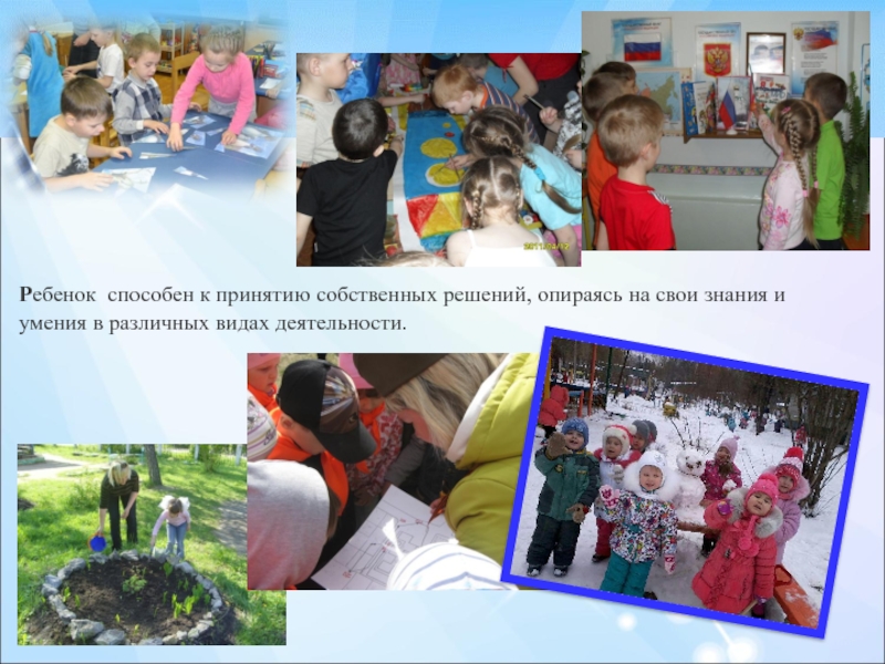 Слайд 12Ребенок способен к принятию собственных решений, опираясь на свои знания и