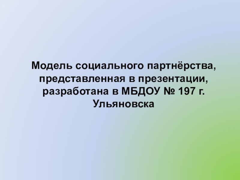 МОДЕЛЬ ВЗАИМОДЕЙСТВИЯ МБДОУ № 197 С СЕМЬЯМИ ВОСПИТАННИКОВ НА ОСНОВЕ СОЦИАЛЬНОГО ПАРТНЕРСТВА