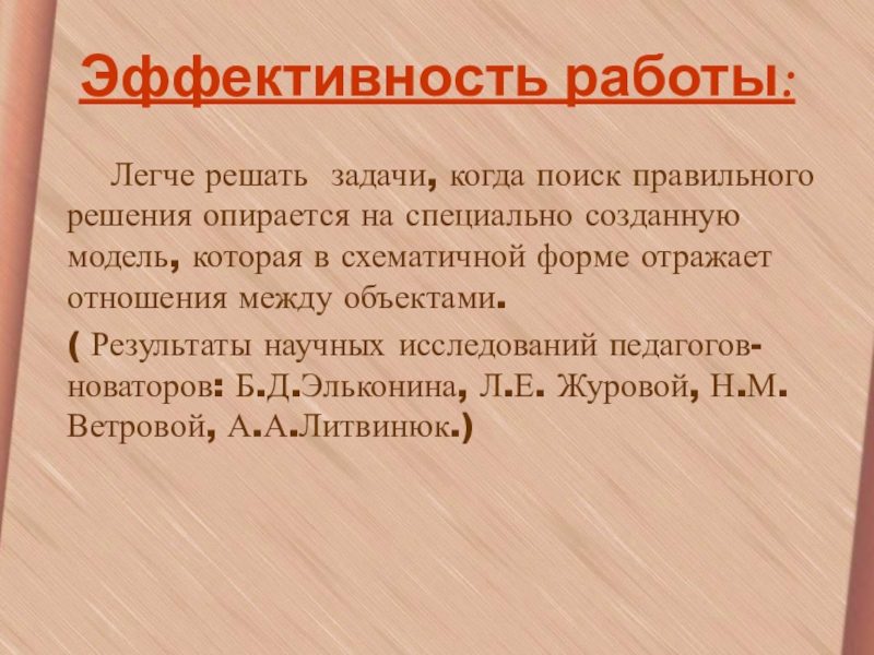 ( Результаты научных исследований педагогов- новаторов: Б.Д.Эльконина, Л.Е. Журовой, Н.М.Ветровой, А.А.Литвинюк.)