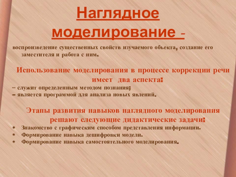 Использование моделирования в процессе коррекции речи имеет два аспекта: