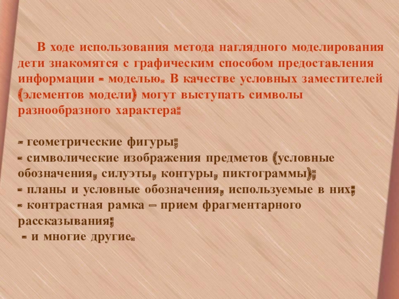 Слайд 9 В ходе использования метода наглядного моделирования дети знакомятся
