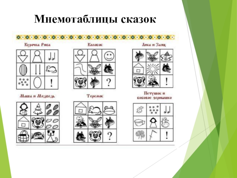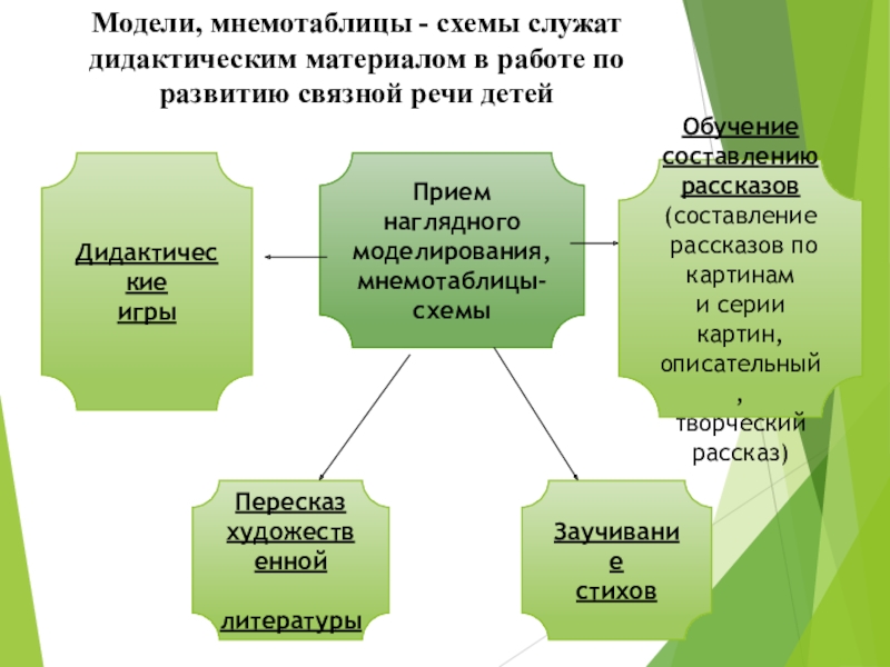 Слайд 10Модели, мнемотаблицы - схемы служат дидактическим материалом в работе по развитию