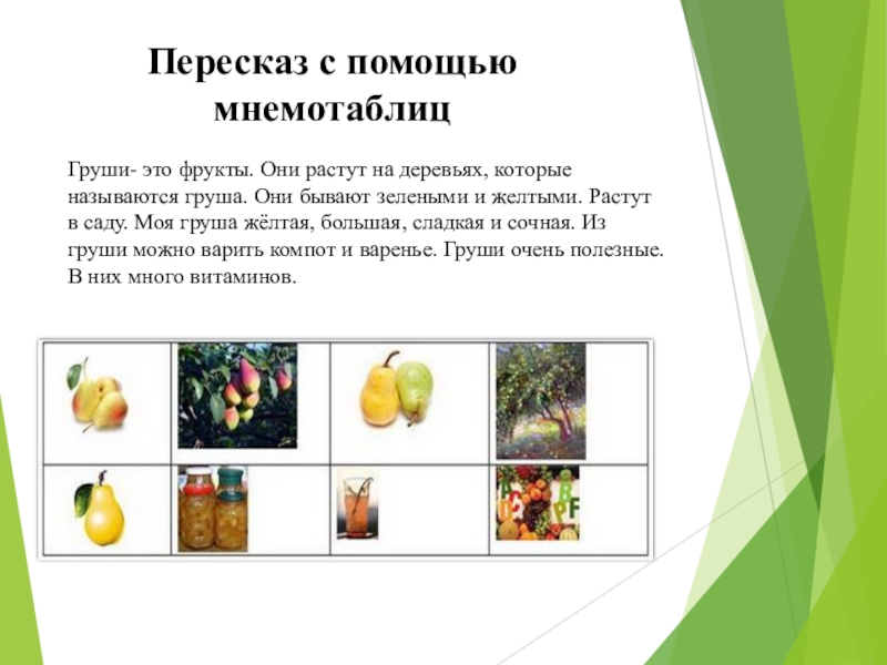 называются груша. Они бывают зелеными и желтыми. Растут в саду. Моя груша жёлтая, большая, сладкая и сочная. Из груши можно варить компот и варенье. Груши очень полезные. В них много витаминов.