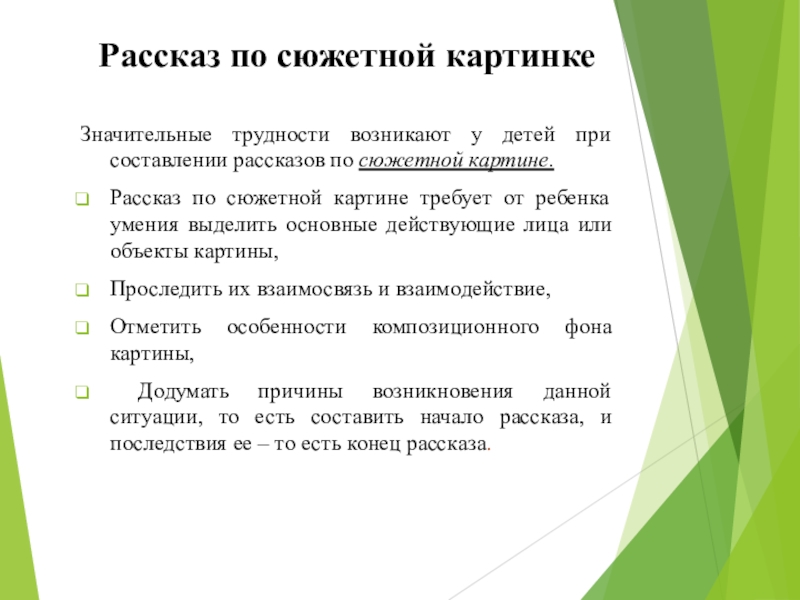 Рассказ по сюжетной картине требует от ребенка умения выделить основные действующие лица или объекты картины,