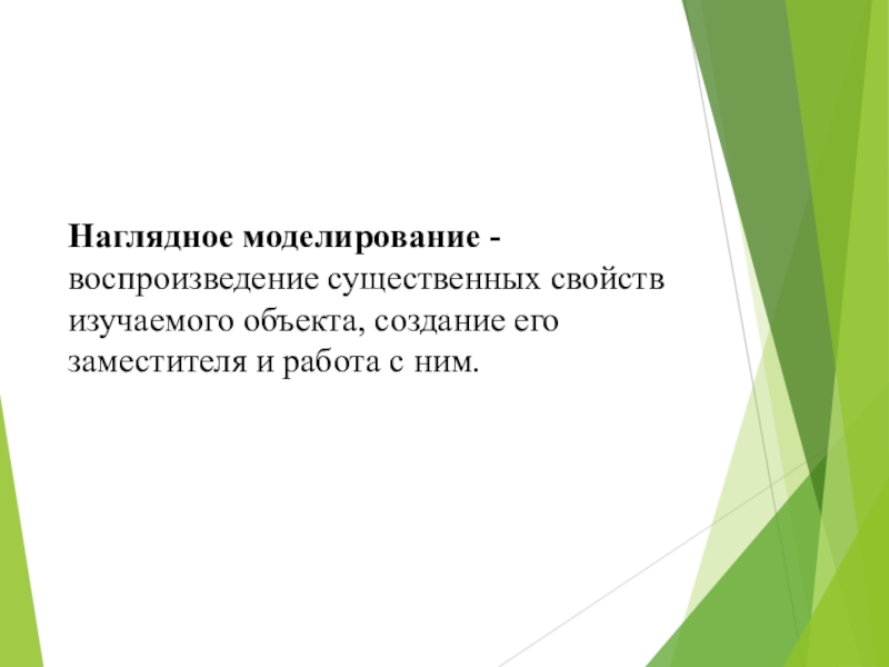 Наглядное моделирование - воспроизведение существенных свойств изучаемого объекта, создание его заместителя