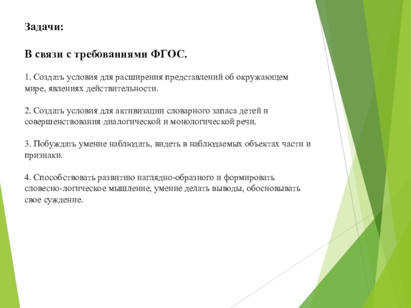 3. Побуждать умение наблюдать, видеть в наблюдаемых объектах части и признаки.