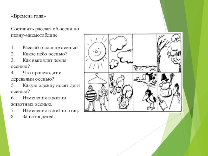 Составлять описательные рассказы об игрушках, предметах, временах года.