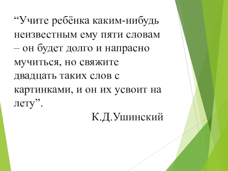 Слайд 2“Учите ребёнка каким-нибудь неизвестным ему пяти словам – он будет долго