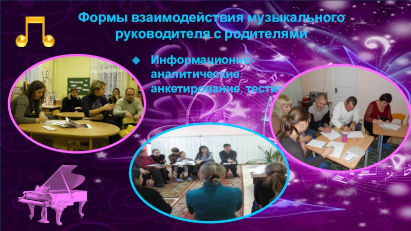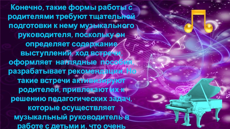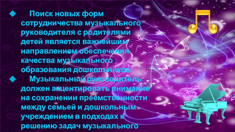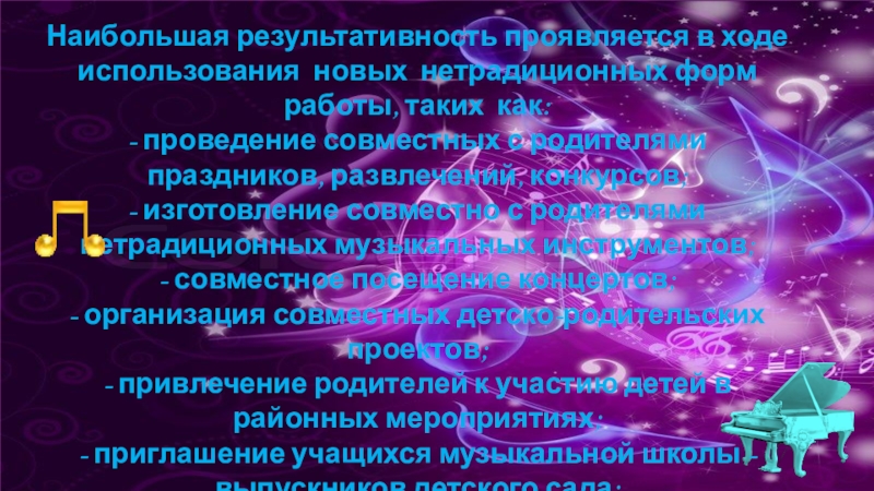 Слайд 8 Поиск новых форм сотрудничества музыкального руководителя с родителями