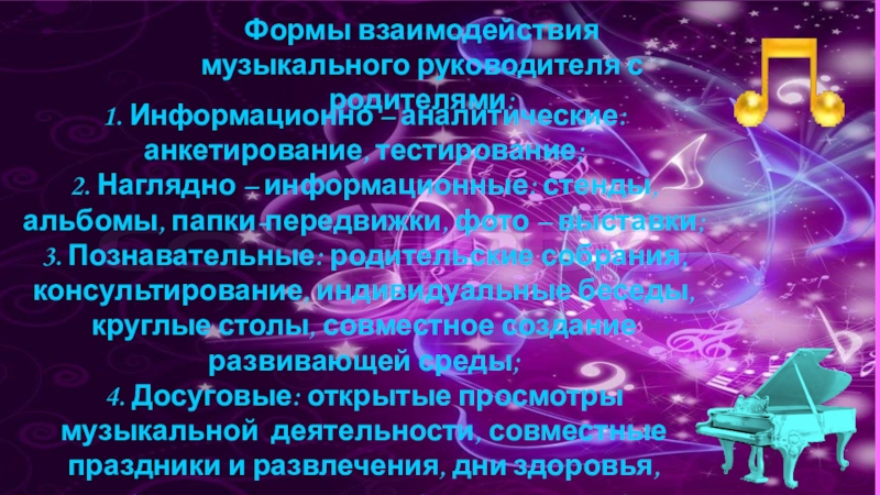 Формы взаимодействия музыкального руководителя с родителями:
