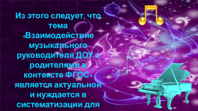 Слайд 31Из этого следует, что тема «Взаимодействие музыкального руководителя ДОУ с родителями