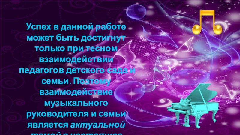 педагогов детского сада и семьи. Поэтому взаимодействие музыкального руководителя и семьи является актуальной темой в настоящее время.