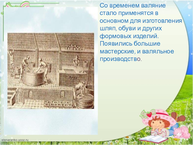 и других формовых изделий. Появились большие мастерские, и валяльное производство.