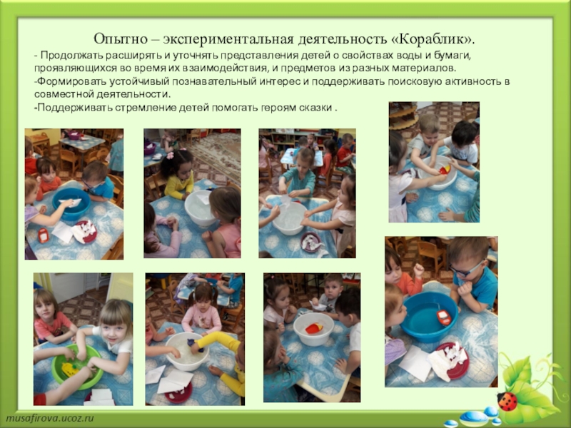 7. Опытно – экспериментальная деятельность «Кораблик».