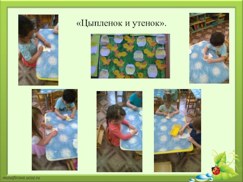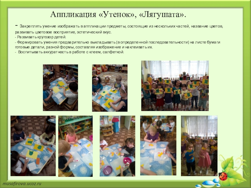 Слайд 10 Аппликация «Утенок», «Лягушата».