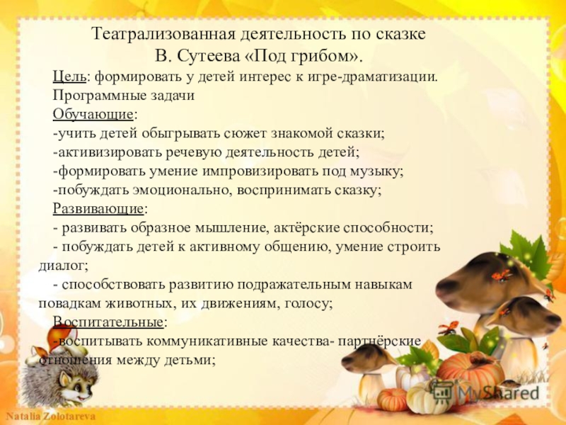 10. Театрализованная деятельность «Под грибом».