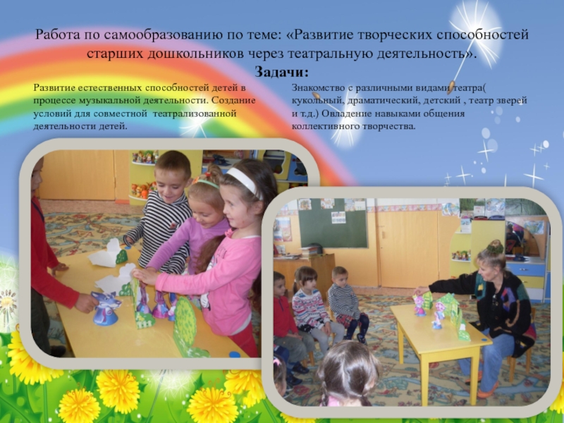 Развитие естественных способностей детей в процессе музыкальной деятельности. Создание условий для совместной театрализованной деятельности детей.