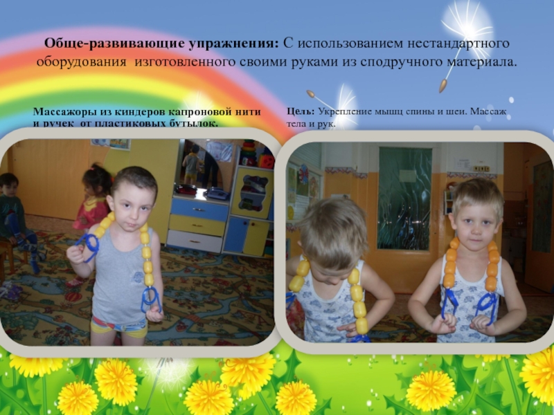 Массажоры из киндеров капроновой нити и ручек от пластиковых бутылок.