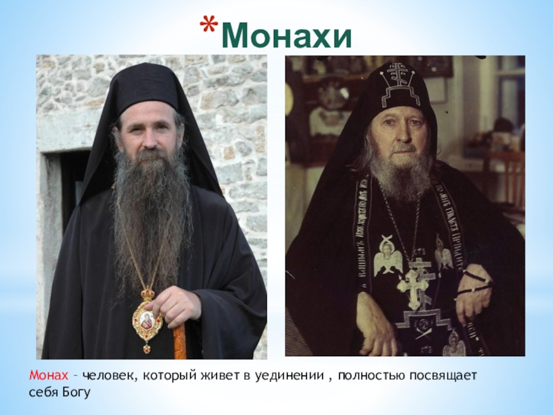 МонахиМонах – человек, который живет в уединении , полностью посвящает себя Богу