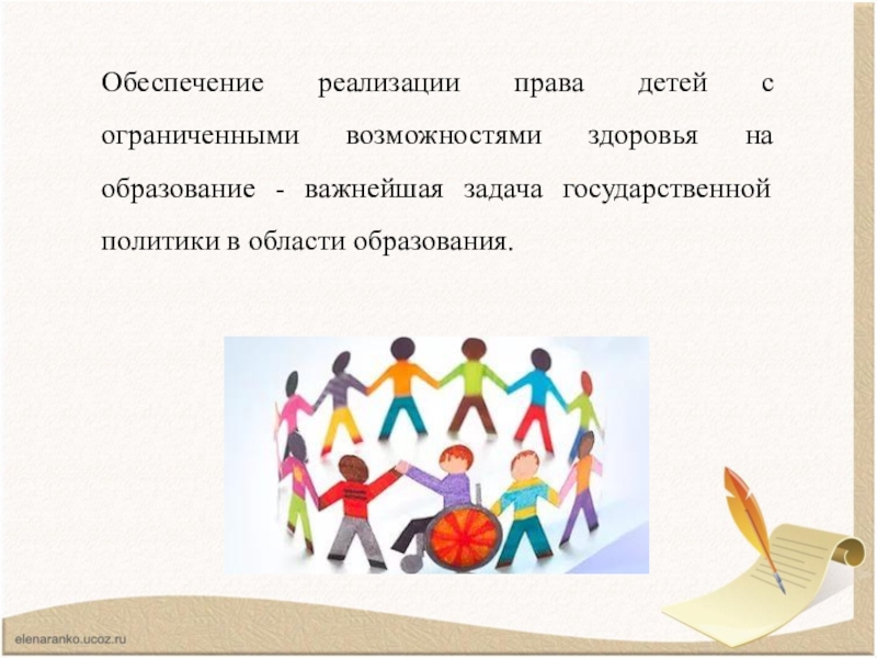 Слайд 2Обеспечение реализации права детей с ограниченными возможностями здоровья на образование -
