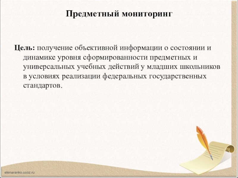 Цель: получение объективной информации о состоянии и динамике уровня сформированности предметных