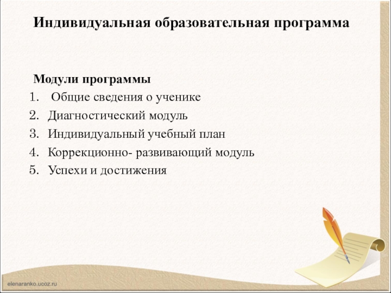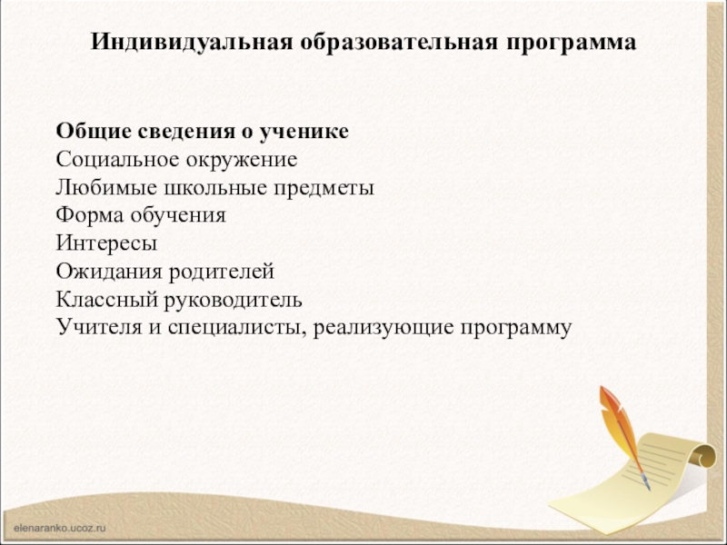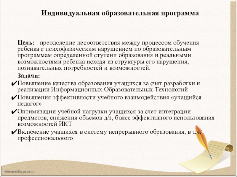 Индивидуальная программа психолого-педагогического сопровождения учащегося с ОВЗ