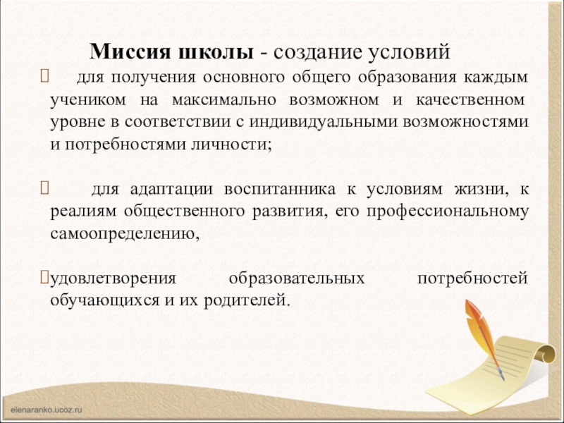 основного общего образования каждым учеником на максимально возможном и качественном уровне в соответствии с индивидуальными возможностями и потребностями личности;
