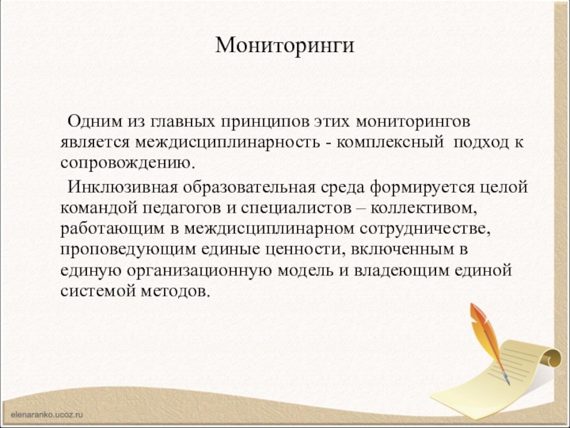 этих мониторингов является междисциплинарность - комплексный подход к сопровождению.