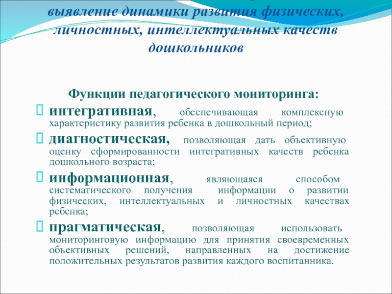 диагностическая, позволяющая дать объективную оценку сформированности интегративных качеств ребенка дошкольного возраста;