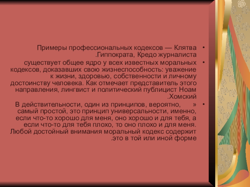 Примеры профессиональных кодексов — Клятва Гиппократа, Кредо журналиста.