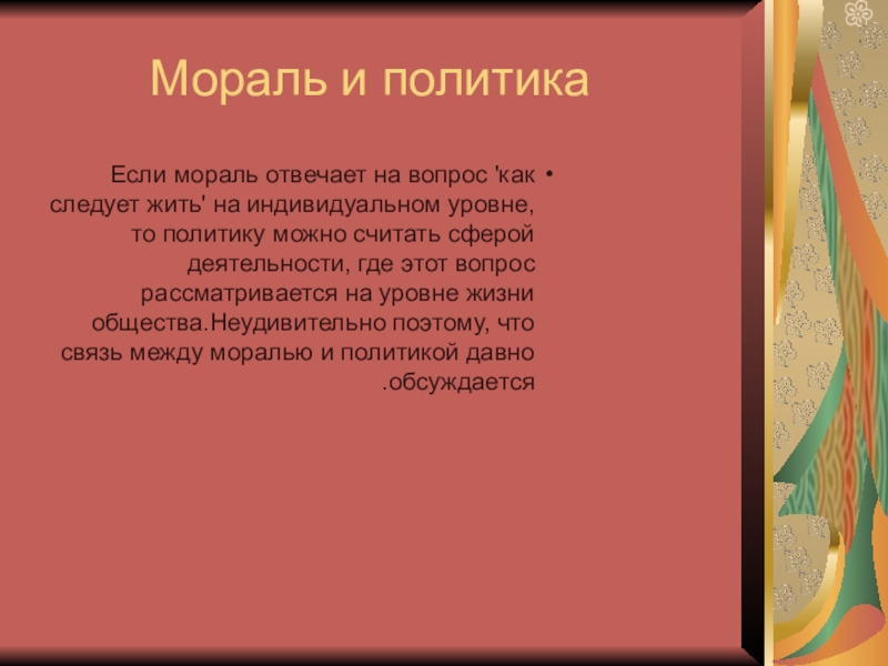 Слайд 3Мораль и политика