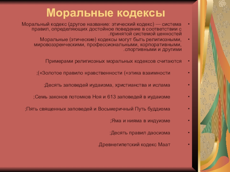 Слайд 8Моральные кодексы