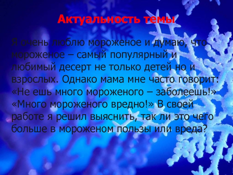 ТЕМА: «Мороженое Польза или вред?»