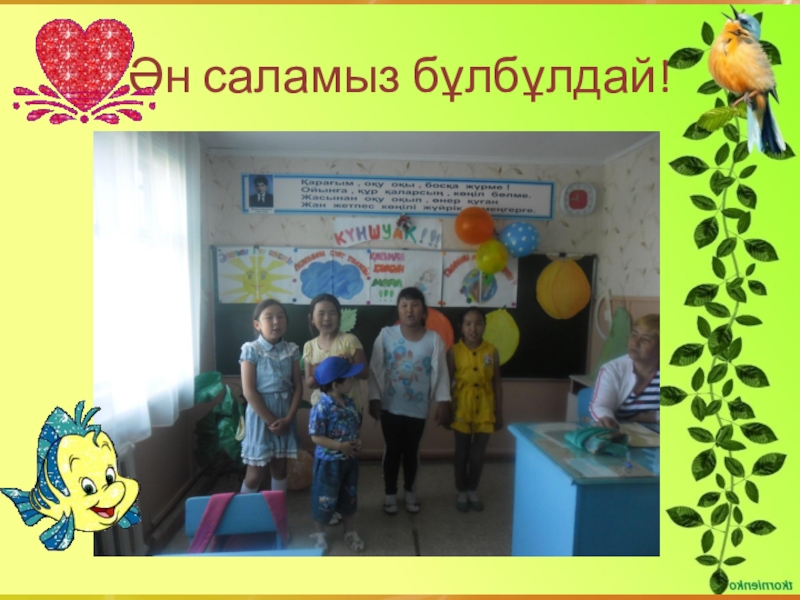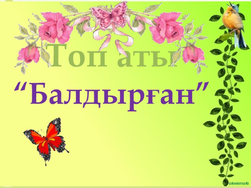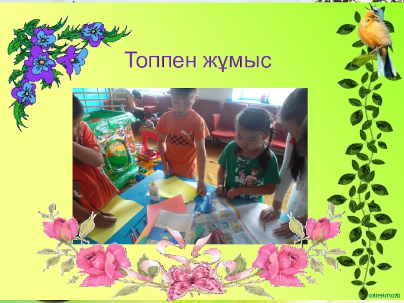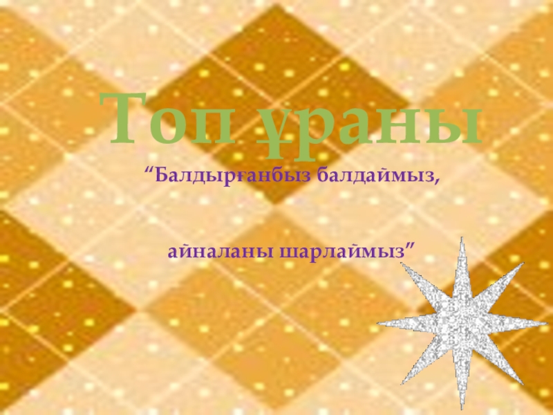 Слайд 4Топ ұраны “Балдырғанбыз балдаймыз, айналаны шарлаймыз”