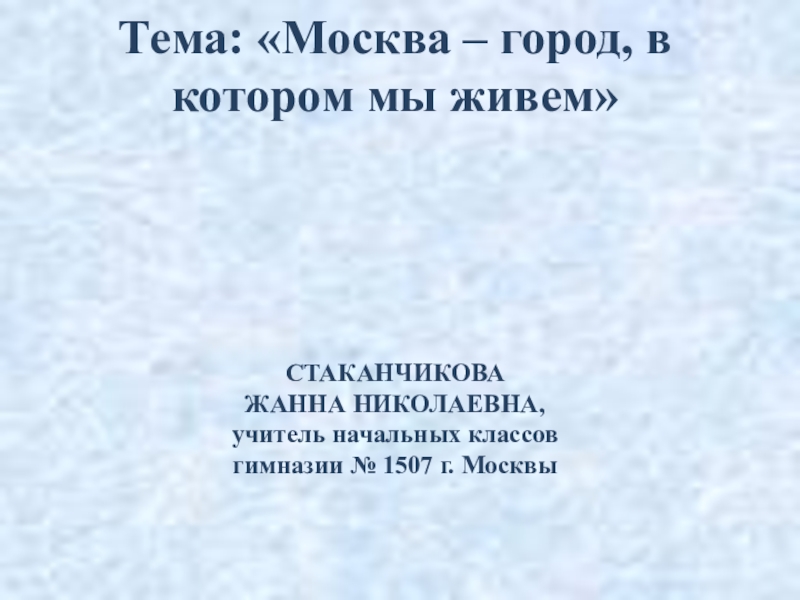 Тема: «Москва – город, в котором мы живем»     СТАКАНЧИКОВА  ЖАННА НИКОЛАЕВНА,