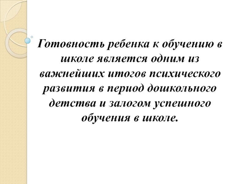 психического развития в период дошкольного детства и залогом успешного обучения в школе.