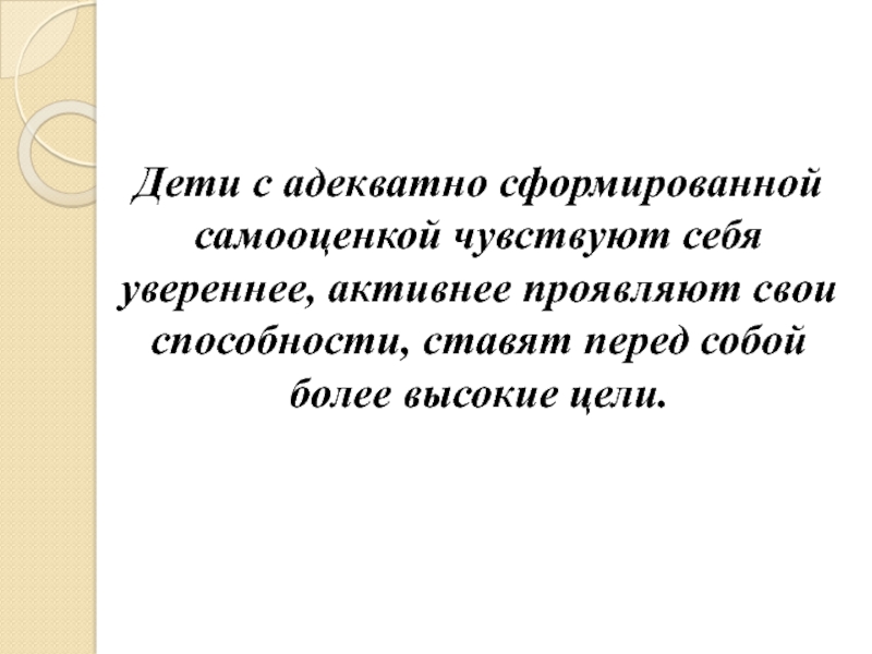Слайд 11Дети с адекватно сформированной самооценкой чувствуют себя увереннее, активнее проявляют свои