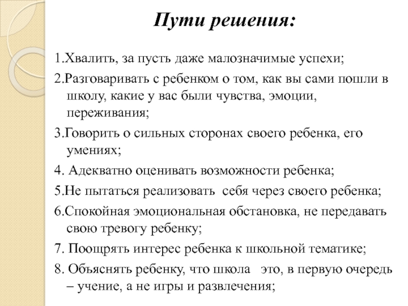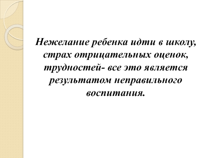 Слайд 13Нежелание ребенка идти в школу, страх отрицательных оценок, трудностей- все это