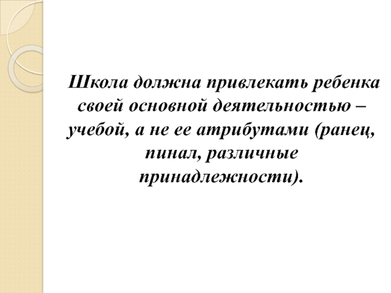 Слайд 12Школа должна привлекать ребенка своей основной деятельностью – учебой, а не