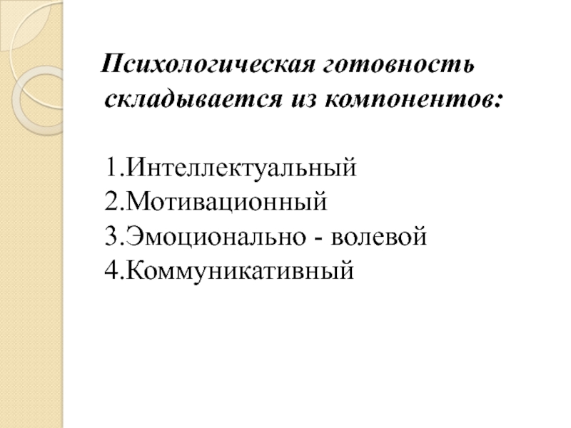 Слайд 3 Психологическая готовность складывается из компонентов: