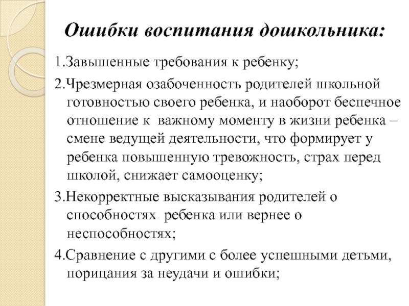 Слайд 14Ошибки воспитания дошкольника: