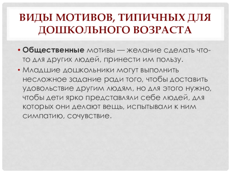 Слайд 10Виды мотивов, типичных для дошкольного возраста