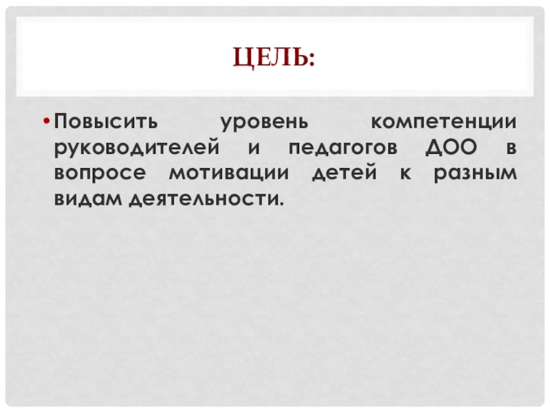 Повысить уровень компетенции руководителей и педагогов ДОО в вопросе мотивации