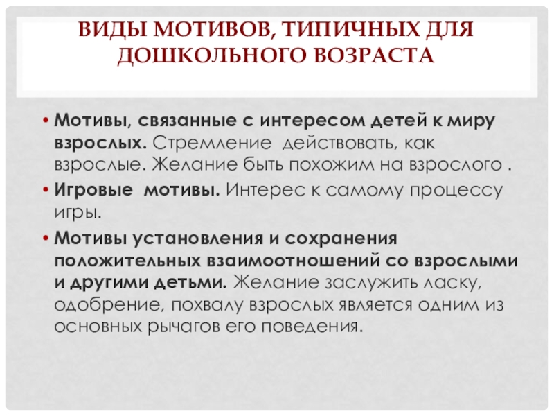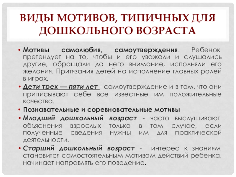 Слайд 8Виды мотивов, типичных для дошкольного возраста