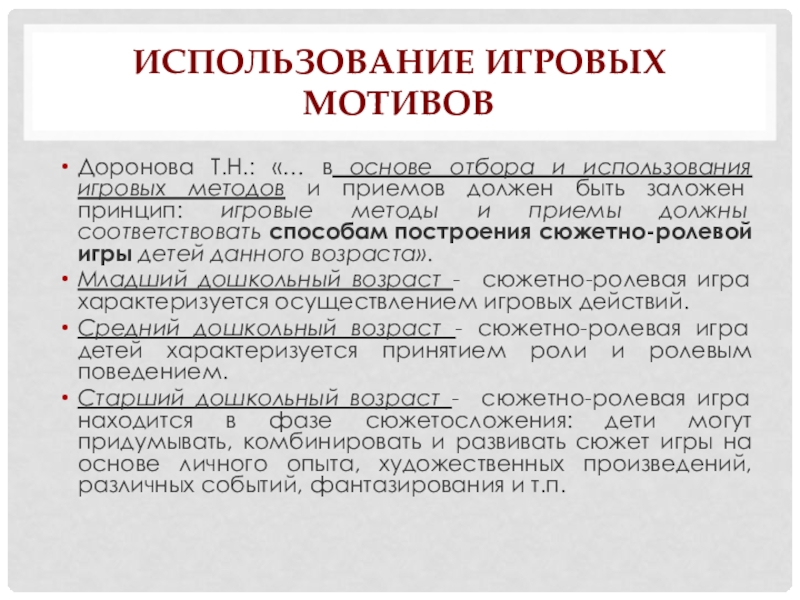 Доронова Т.Н.: «… в основе отбора и использования игровых