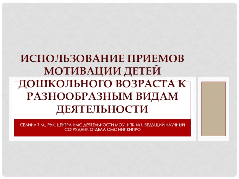 Слайд 1Селина Т.М., рук. Центра НМС деятельности МОУ, НПК №1, ведущий научный