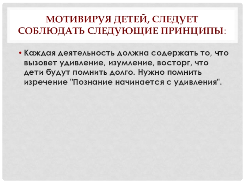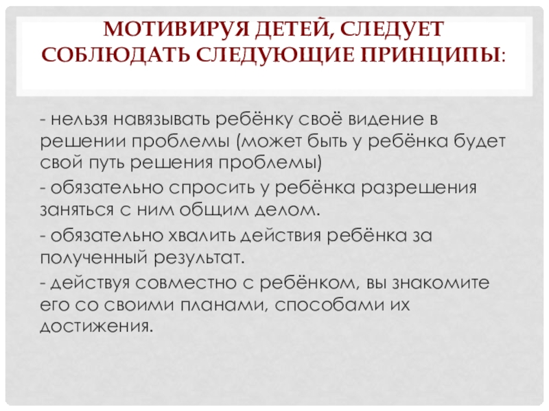Слайд 18Мотивируя детей, следует соблюдать следующие принципы: